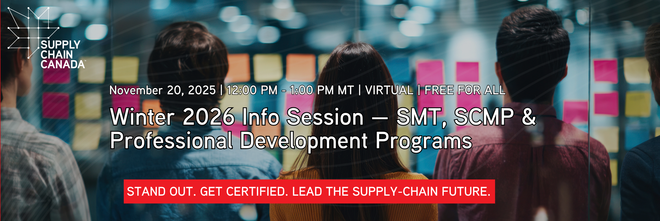 About the Info SessionJoin the Supply Chain Canada West team for a one-hour virtual Info Session crafted for post-secondary students and Student Affiliate members. Discover how our SMT (Supply Management Training) Diploma, SCMP (Supply Chain Management Professional) designation, and ongoing professional development modules can help you build — or advance — your supply-chain career. Bring your questions and invite your colleagues and friends to join. |