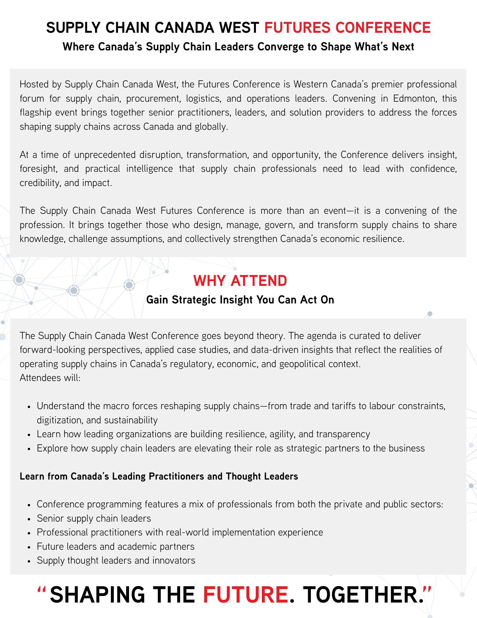 By entering your email you are giving your consent to be contacted electronically by Supply Chain Canada on matters regarding the event and your registration/enrollment.